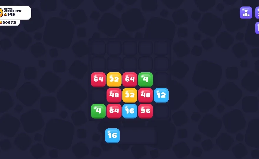 «Цепная реакция»: механика тетриса соединена с принципами игры 2048. Блоки объединяются и умножаются, создавая длинные цепочки.